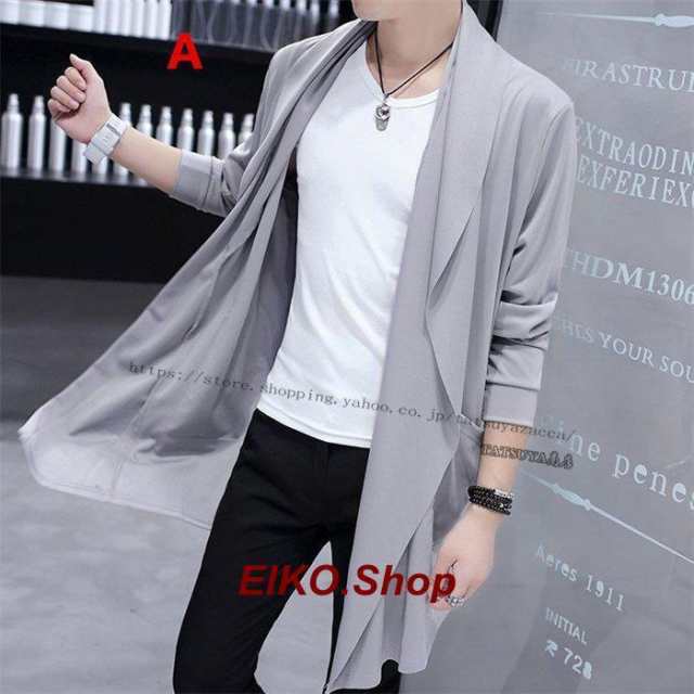 シースルー サマーカーディガン カーディガン メンズ ロング丈 薄手 ノーカラー トップス カジュアル アウター メンズファッション