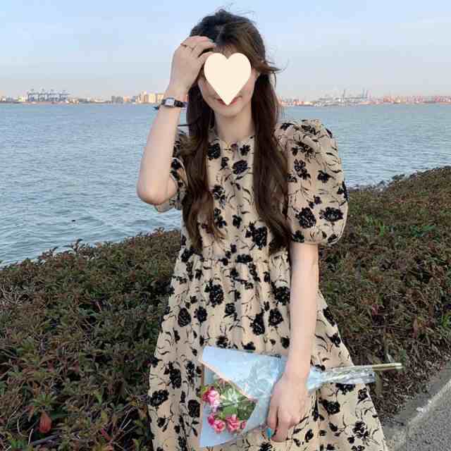 ワンピース レディース 40代 きれいめ マキシワンピース 春夏 半袖ワンピース 花柄パフスリーブ aラインスカート オシャレ韓国風 大人