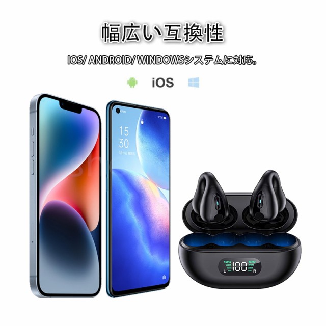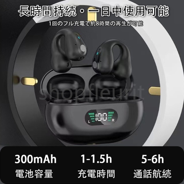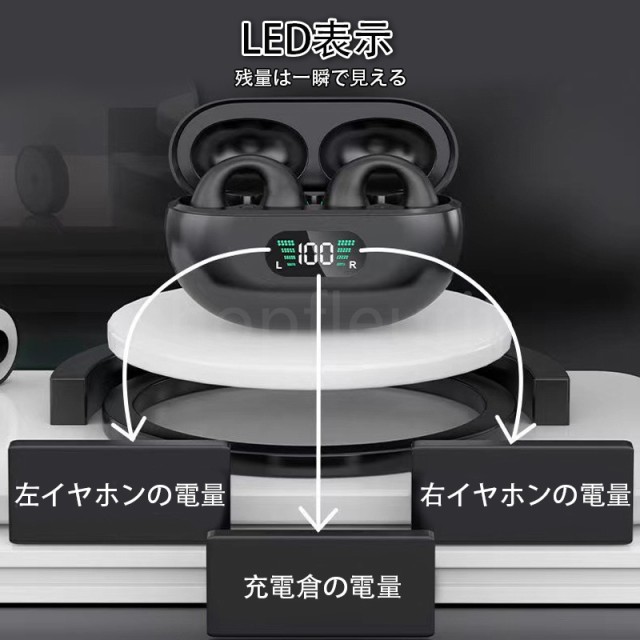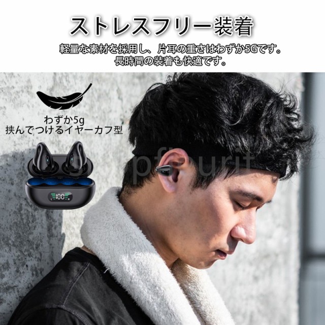 ワイヤレスイヤホン Bluetooth5.3 LED 残量表示 イヤーカフ型 高音質 Hi-Fi 5g超軽量 無痛 ノイズキャンセリング プレゼント
