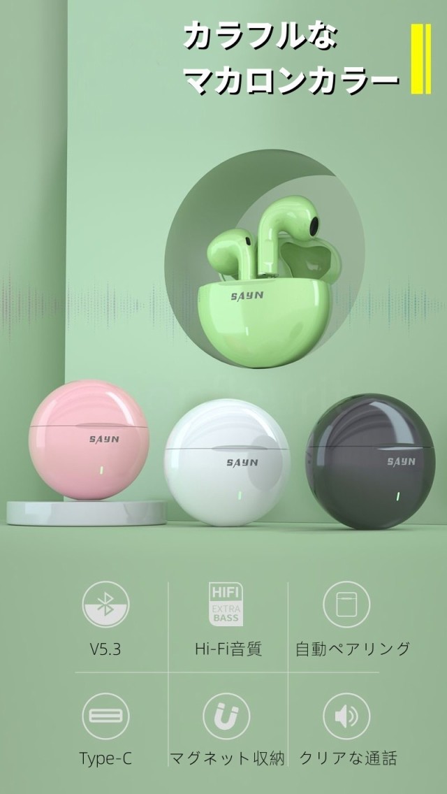 ワイヤレスイヤホン Bluetooth5.3 小型 丸形 高音質 Hi-Fi 超軽量 IPX5防水 片耳 両耳 自動接続 マグネット収納 左右分離 プレゼント ギフト