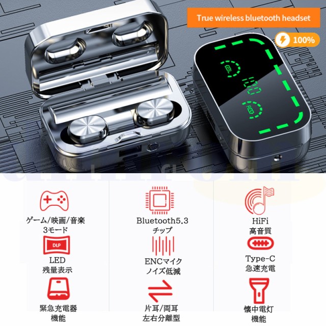 ワイヤレスイヤホン Bluetooth5.3 残電表示 ブルートゥース 高音質 Hi-Fi 片耳 両耳 超軽量 モバイルバッテリー ENCノイズキャンセリング 左右分離