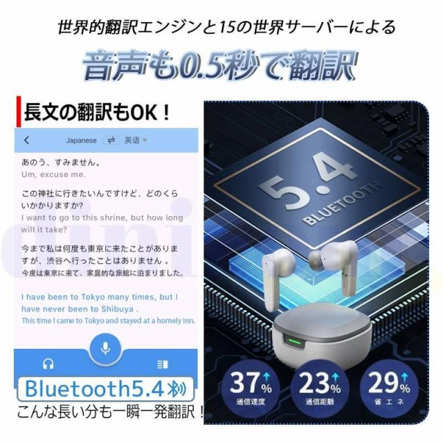 翻訳機 翻訳イヤホン イヤホン型 翻訳機 AI Bluetooth イヤホン 翻訳 多国語対応 同時通訳 ワイヤレス 海外旅行 観光 外国 ビジネス 英語 中国語 日本語 韓国語