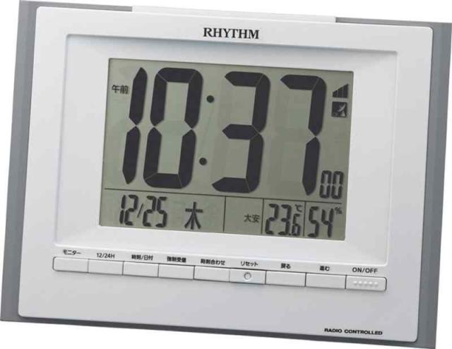 リズム(RHYTHM) 掛け時計 目覚まし時計 電波 デジタル 置き掛け兼用 温度 湿度 カレンダー フィットウェーブD168 グレー 12.5x17.0x2.8cm 8RZ168SR08