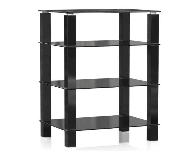 FITUEYES オーディオラック パワーアンプキャビネット オーディオスピーカーアンプキャビネット CDアンプ機器収納 プリンタブラケット ホームストレージシェルフ 強化ガラス オープンタイプ 北欧風 ブラック 4段 AS406002GB