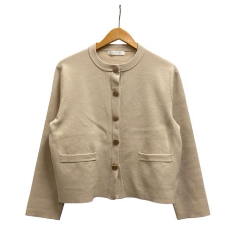 【中古】ドゥクラッセ DoCLASSE カーディガン 長袖 クルーネック 無地 コットン混 12527-130 M ベージュ ゴールド レディース