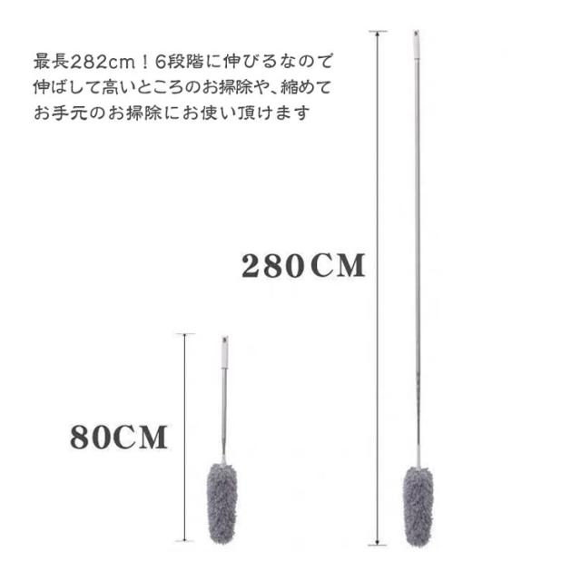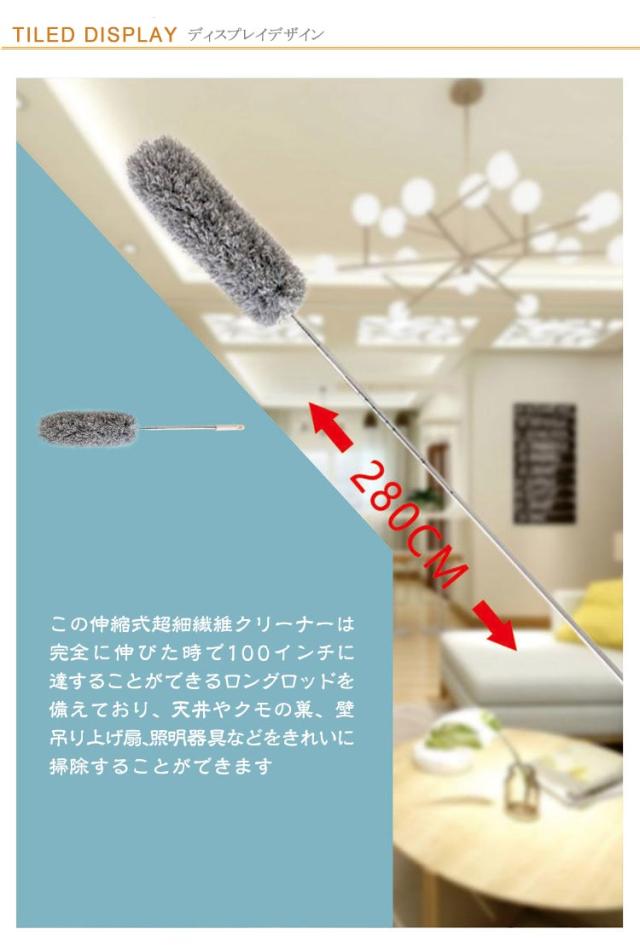 | 【高所 掃除】この伸縮式超細繊維クリーナーは完全に伸びた時で100インチに達することができるロングロッドを備えており、天井やクモの巣、壁、吊り上げ扇、照明器具などをきれいに掃除することができます。椅子や危険な梯子は二度と登ってはならない。 【超便利な伸縮い*曲がるタイプ】最長282cm!6段階に伸びるなので、伸ばして高いところのお掃除や、縮めてお手元のお掃除にお使い頂けます。ヘッド部分の芯はしっかりした針金のようになっているので、360度、好きな場所で自由自在に折り曲げることができます。色々な場所の掃除にぴったりな多変性あるです。 【お手入れが簡単】ふわっとしたマイクロファイバー素材なのでほこりや汚れをしっかり絡めとります! モップ部分は取り外し可能なので、外して水洗いもでき、繰り返し使えて経済的です。洗ってもすぐに乾いて使いやすさ○ 【適用場所】家、天井、ホテルのロビーなど。天井、シャンデリア、エアコンなどは、通常のモップでは掃除されないほこりがたまりやすい場所一番お勧めです! | |