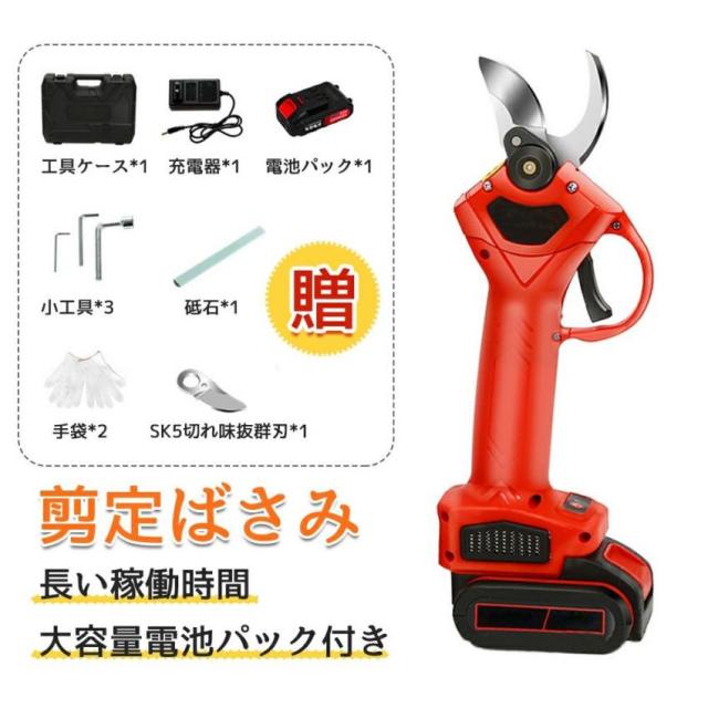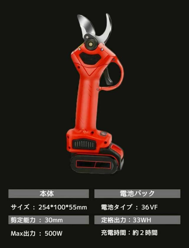 電動 剪定バサミ 充電式 レディース 剪定鋏 コードレス 枝切り 枝切ばさみ バサミ 電動ハサミ 直径30mm 軽量 女性