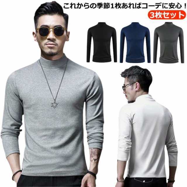 カットソー Tシャツ メンズ 無地 3枚 8サイズ ハイネック カットソー tシャツ ロンT 長袖 メンズ 送料無料 無地 トップス インナー 大きいサイズ モダール 春秋 ビジネス 通勤 普段着 レイヤード 重ね着 メンズ長袖Tシャツ ロンティー ロングシャツ カットソー 部屋着 セット