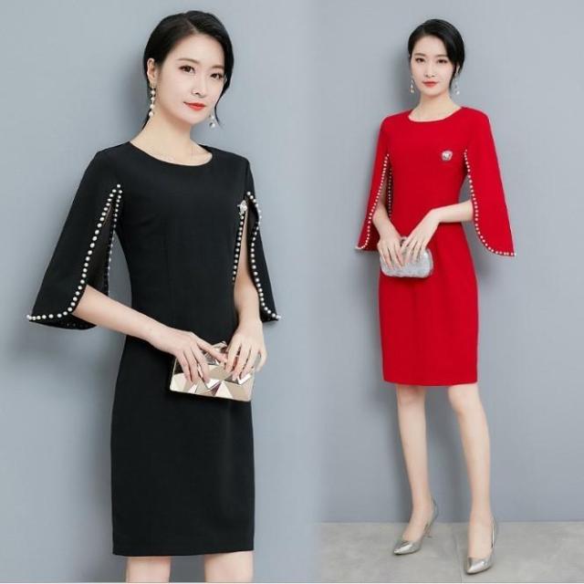 ワンピース きれいめ ドレス 結婚式 半袖 パーティードレス レディース フォマル オフィス 二次会 お呼ばれ ミディアム 膝丈 春 夏 秋 通勤 着痩せ