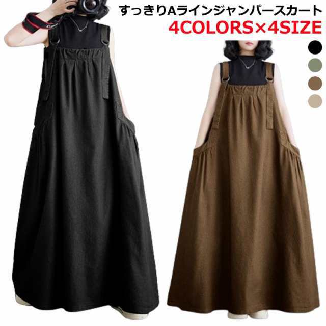ジャンパースカート 大人 ジャンパー 黒 ロング サロペット 夏 大きいサイズ サロペットスカート スカート サロペットワンピース レディース スカート オールインワン aライン フレア ジャンパースカート オーバーオール ギャザー ポケット
