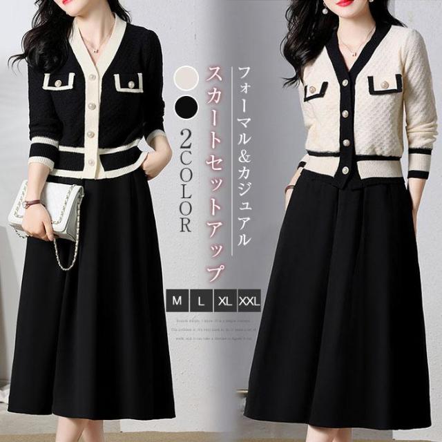 セットアップ レディース スーツ スカート Aライン フォーマル プリーツスカート テーラードジャケット ゆったり ロングスカート 長袖 通勤 OL