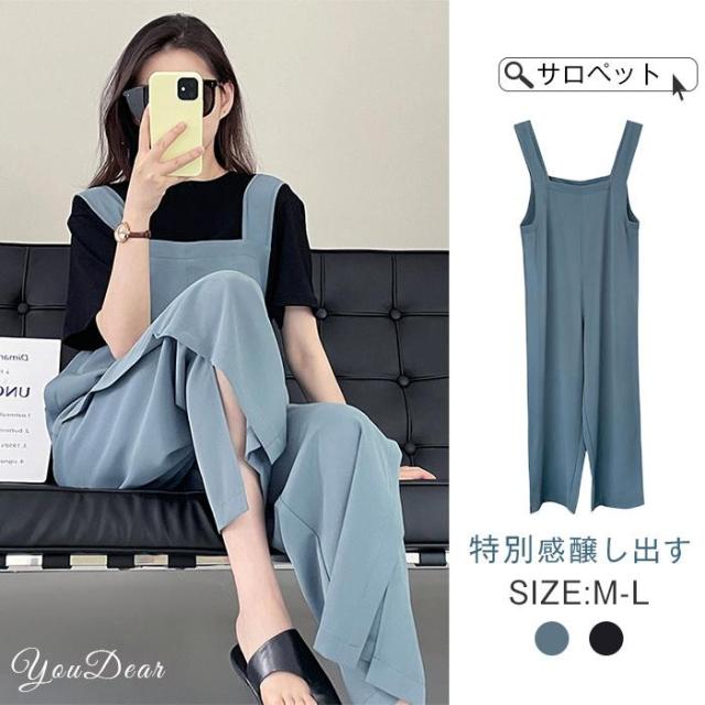 サロペット オールインワン レディース サロペットパンツ オールインワン パンツドレス オーバーオール ワイドパンツ ガウチョパンツ ゆったり 着痩せ OL