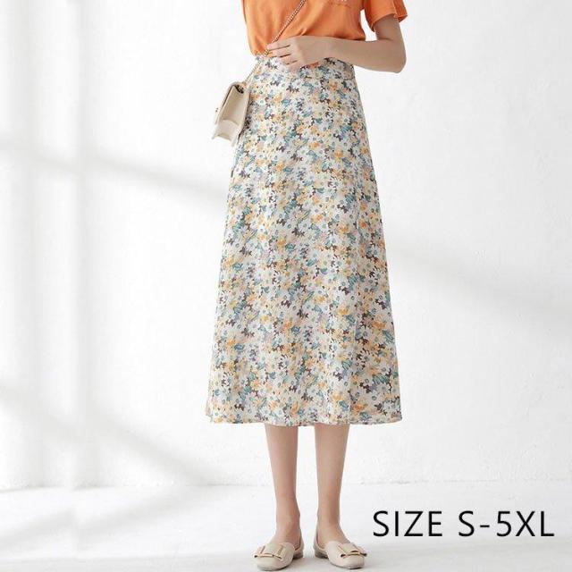 スカート 春夏 フレアスカート 40代 レディース aラインスカー 楽ちん 膝丈 花柄 ハイウエスト 黒スカート ボトムス 美脚 大人 可愛い 韓国風 20代 30代
