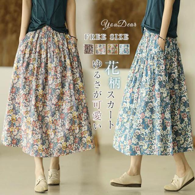 花柄 スカート ロング 総柄 スカート ミモレ丈 夏 きれいめ フレアスカート 花柄 夏 ロング 綿麻 春夏 薄手 涼しい 着痩せ 体型カバー フレア 通勤 海 快適