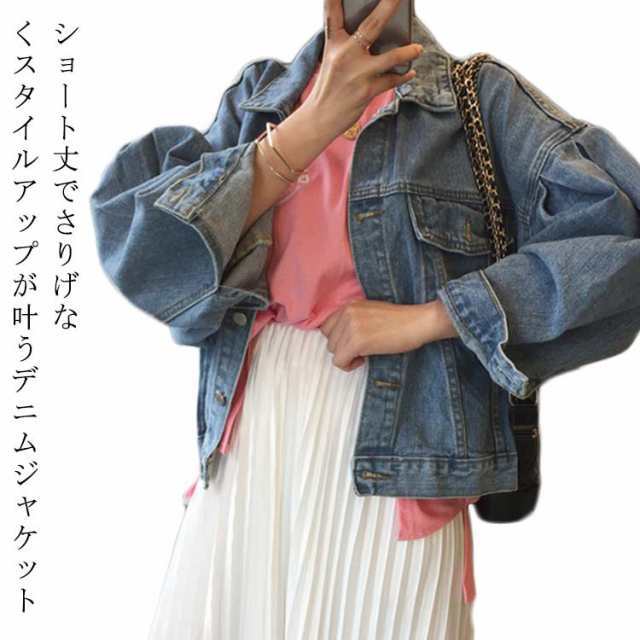 ボリュームスリーブ 大人可愛い オーバーサイズ Gジャン ヴィンテージライク ビッグGジャン デニム ビッグシルエット 無地 ボリュームスリーブ カジュアル 甘辛コーデ アウター ドロップショルダー ブルー デニム地