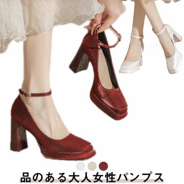 パンプス ブライダルシューズ 美脚パンプス ストラップ 美脚 きれいめ ギフト レディース 高級感 結婚式 太いヒール 安定感 パーティシューズ パーティーパンプス 痛くない 大人女性 小さいサイズ 歩きやすい ハイヒール 太ヒール チャンキーヒール 発表会 通勤 シューズ