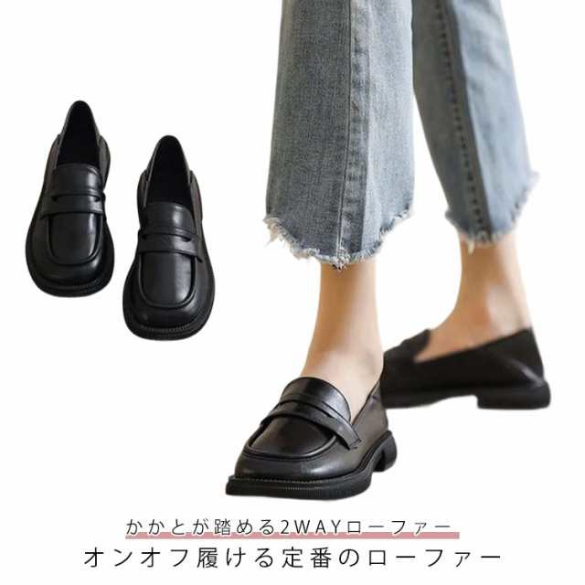 ローファー ローヒール 2way スクールシューズ ディース 学生 歩きやすい 学生ローファー マニッシュシューズ 柔らかい ぺたんこ 靴 ローファー コインローファー スリッポン バブーシュ 通学通勤 ブラック 黒