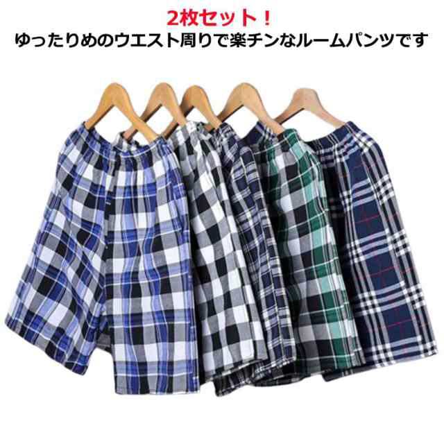 2枚セット ルームパンツ メンズ 夏 接触冷感 ひんやり チェック柄 薄手 ゆったり ハーフパンツ スポーツ 部屋着 パジャマ 大きいサイズ 5分丈 ウエストゴム 無地 ルームウェア 半ズボン スウェット リラックス ワイドパンツ 春 夏 柔らかく カジュアル 送料無料