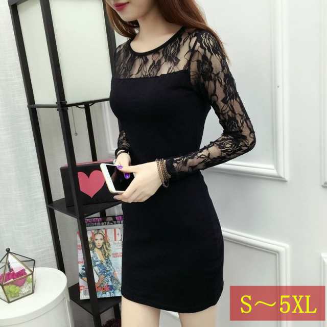 ネコポス送料無料 ワンピース ワンピ シースルー 長袖 ミニワンピース キャバ タイト キャバドレス キャバワンピ ボディー レース 秋冬 春 大きいサイズ スケスケ 袖シースルー タイト