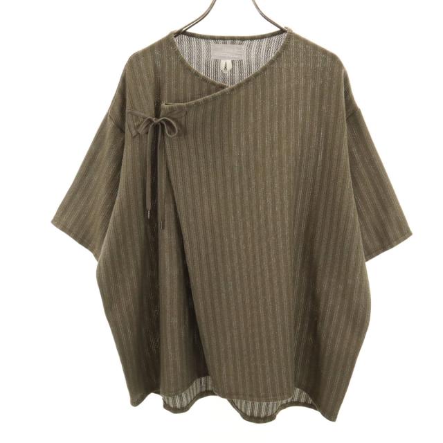 Milok ミロック 日本製 ストライプ柄 5分袖 ニット 46 オリーブ ユニセックス メンズ