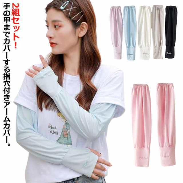 レディース UV対策 2組セット くしゅくしゅ アームカバー 夏用 薄手 涼しい メッシュ 指穴あり ゆったり ゴルフ UVケア 日焼け対策 日焼け防止 腕カバー 紫外線ケア 紫外線対策 アームウォーマー ロング 手袋 シンプル アウトドア 運転 自転車 ゴルフ