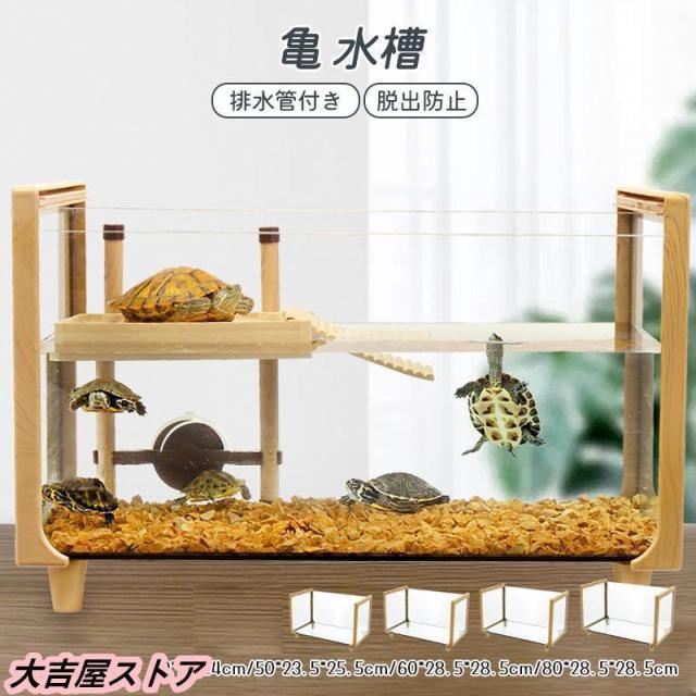 亀 水槽 大きい ガラス ボックス カメの水槽 タートルタンク 排水管付き 日向ぼっこ台 爬虫類 両生類 アクセサリー 飼育ケース カメ生息地