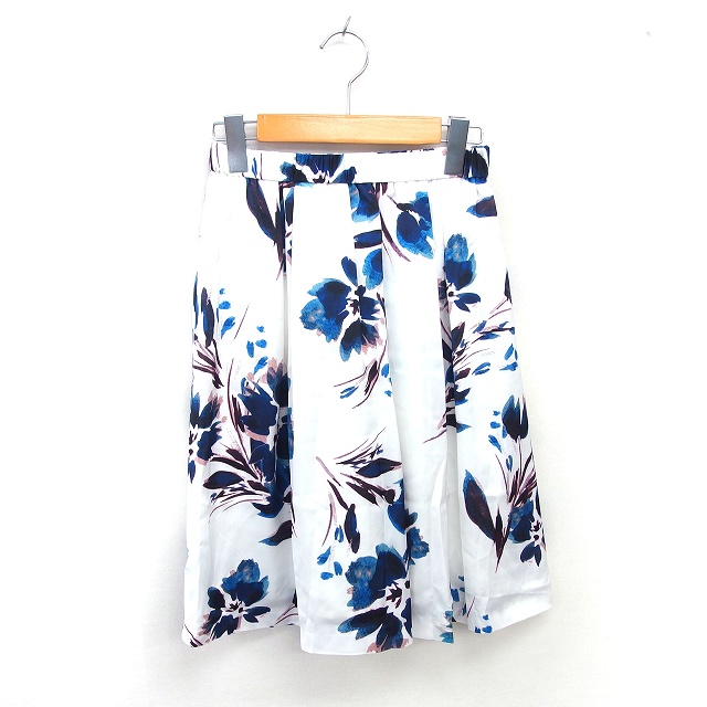 【中古】ナチュラルビューティー NATURAL BEAUTY フレア スカート ひざ丈 花柄 ウエストゴム 薄手 36 白 青 /TT20