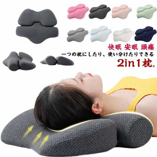 ピロー 枕 首が痛い 頚椎牽引ケア枕 頸椎 腰痛 快眠枕 低反発枕 2in1 いびき 高め 低め 組み合わせ 腰枕 疲労回復 頚椎症 肩こり 仰向け 横向き ストレートネック まくら 矯正枕 安眠枕
