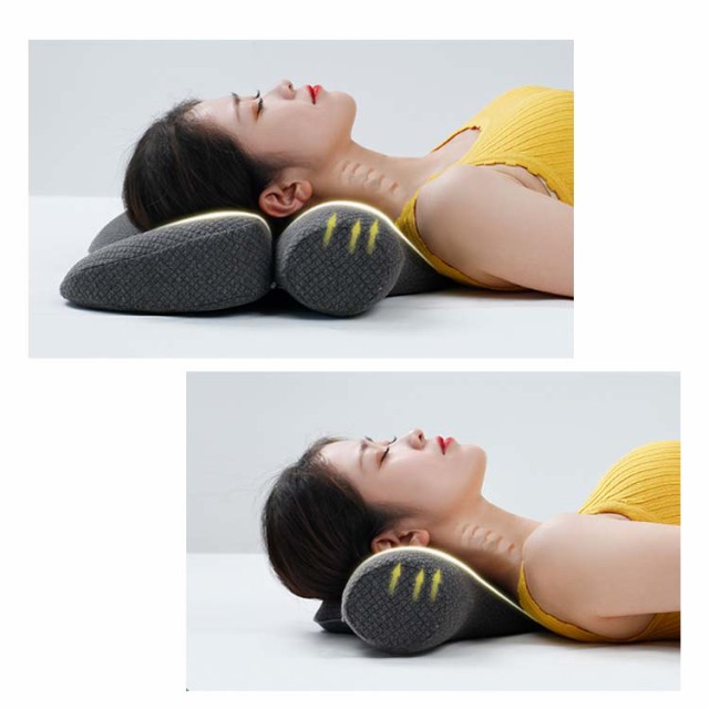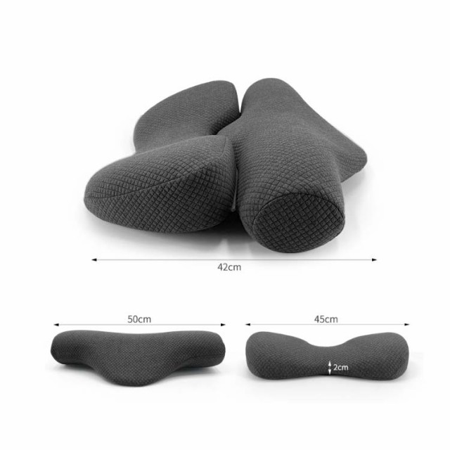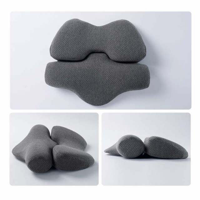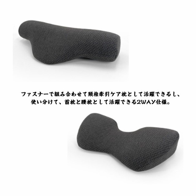 | 一つの枕にしたり、使い分けたりできる2in1枕。 ファスナーで組み合わせて頚椎牽引ケア枕として活躍できるし、使い分けて、首枕と腰枕として活躍できる2WAY仕様。 背筋が伸びて睡眠の良い姿勢や腰をびったりフィットし楽になって、疲労感が少なく。 高密度低反発ウレタンと人間工学に基づく特殊形状で首や頸椎の緊張をしっかりとサポート。 あごの位置を上げて頸椎を自然なカーブに導きます。 | |
