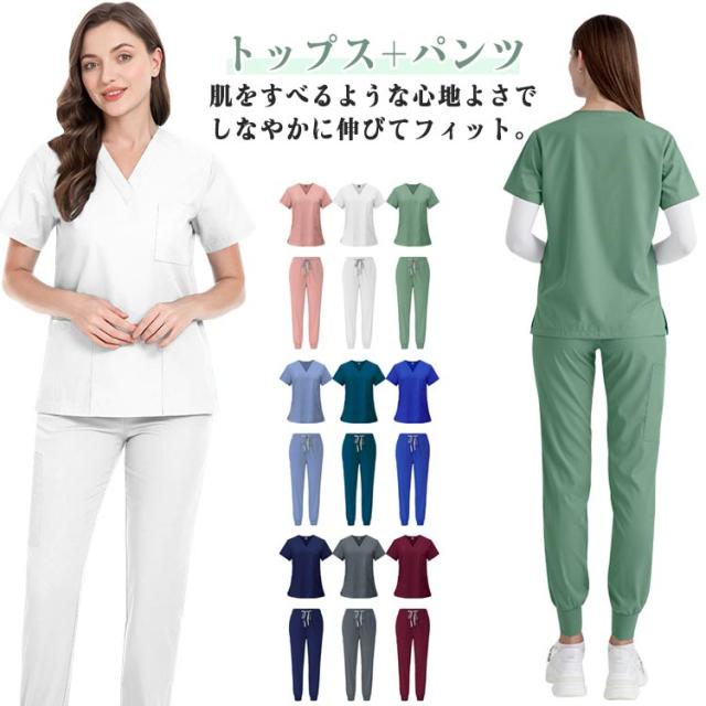 看護師 【上下セット】男女兼用 スクラブ パンツ スクラブセット 3ポケットトップ ズボン 医療 白衣 ナース服 医療用 レディース メンズ 女性 男性 アンファミエ ナース 介護士 かわいい 安い ペット