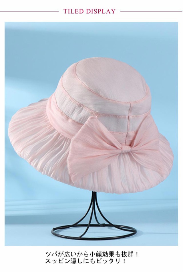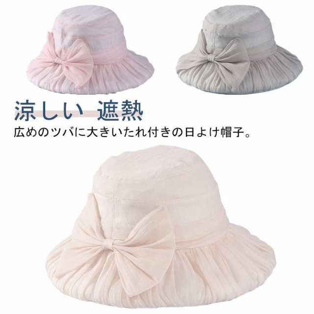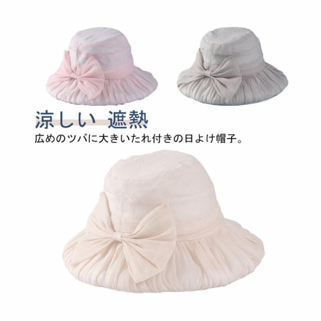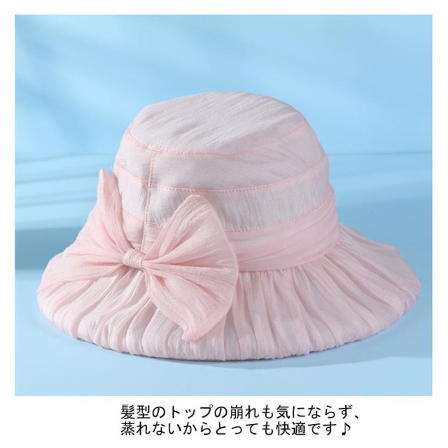 リボン帽子 レディース 夏 つば広 ハット 折りたたみ 深め 日よけ りぼん付き ハット ギャザー入り 涼しい 遮熱 大きいサイズ UVカット 折り畳み 日よけ UV 帽子 小顔効果 リボンハット 日除け帽子 ピンク ホワイト グレー