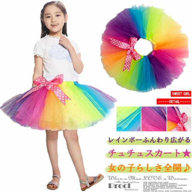 レインボー チュチュスカート 子供 女の子 虹色 ミニスカート チュールスカート カラフルレインボー ふんわり イベント ダンス 衣装 発表