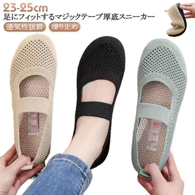 | 足にフィットするマジックテープ厚底スニーカー。 靴全体はソフトなメッシュ素材で、熱がこもりやすい部分の通気性を確保し、ウォーキング中も快適な状態をキープできます。 マジックテープなので好きな横幅に調節でき、甲の高さやワイズなど、様々な足にジャストフィット。着脱便利でお年寄りに最適♪ 靴底には耐摩耗性に強い素材を採用しており、滑り止め加工されるのによって、地面との摩擦力を増やして滑り止め効果がより一層アップ。 晴れの日だけではなく、雨の日も滑り転んだ心配がなく快適に歩けます。 シンプルなデザインでさまざまなファッションにも合わせやすい。 | |