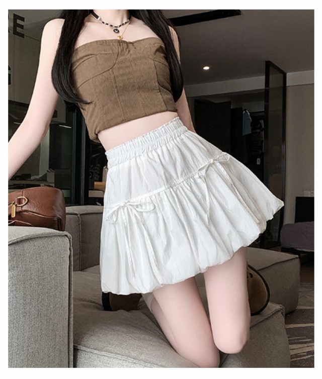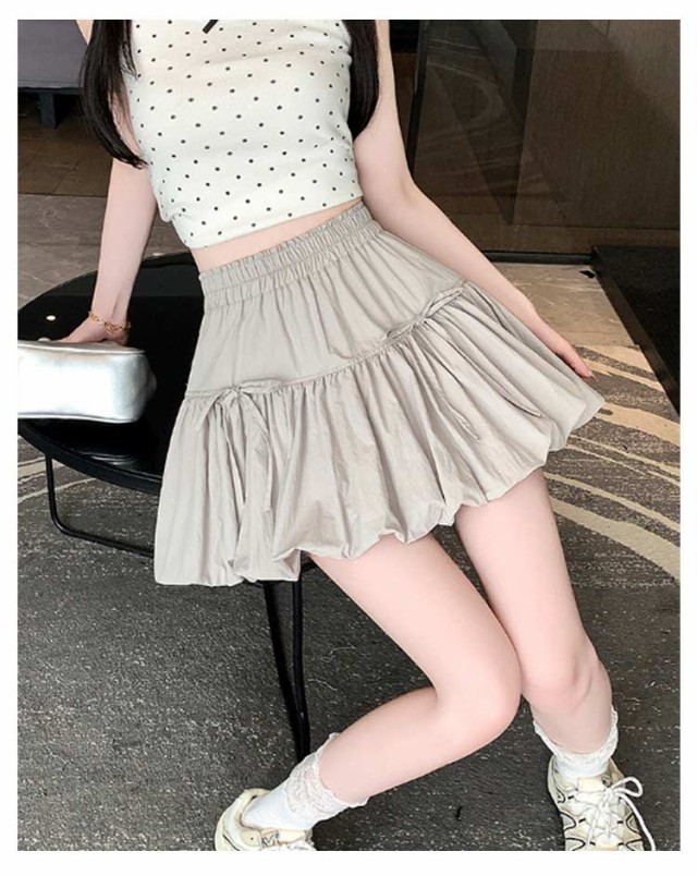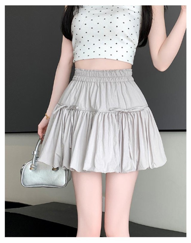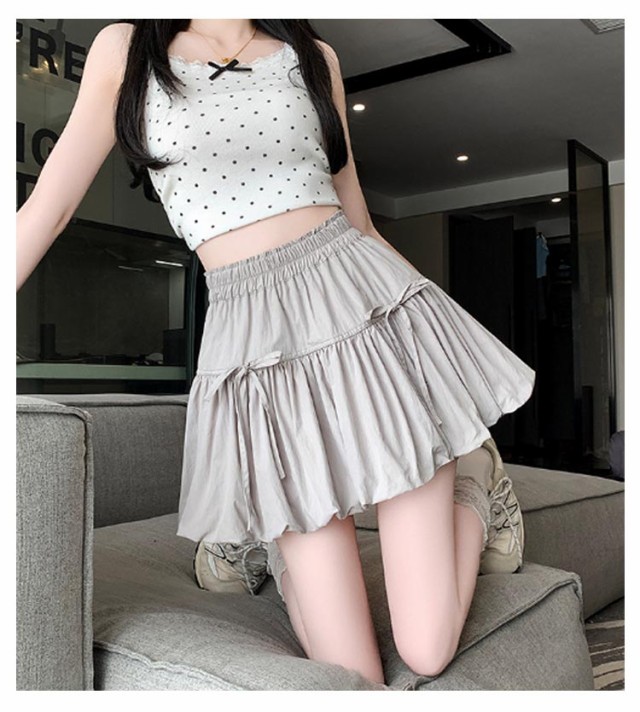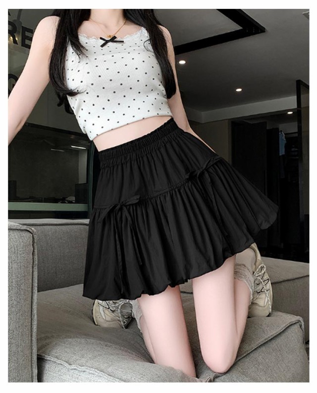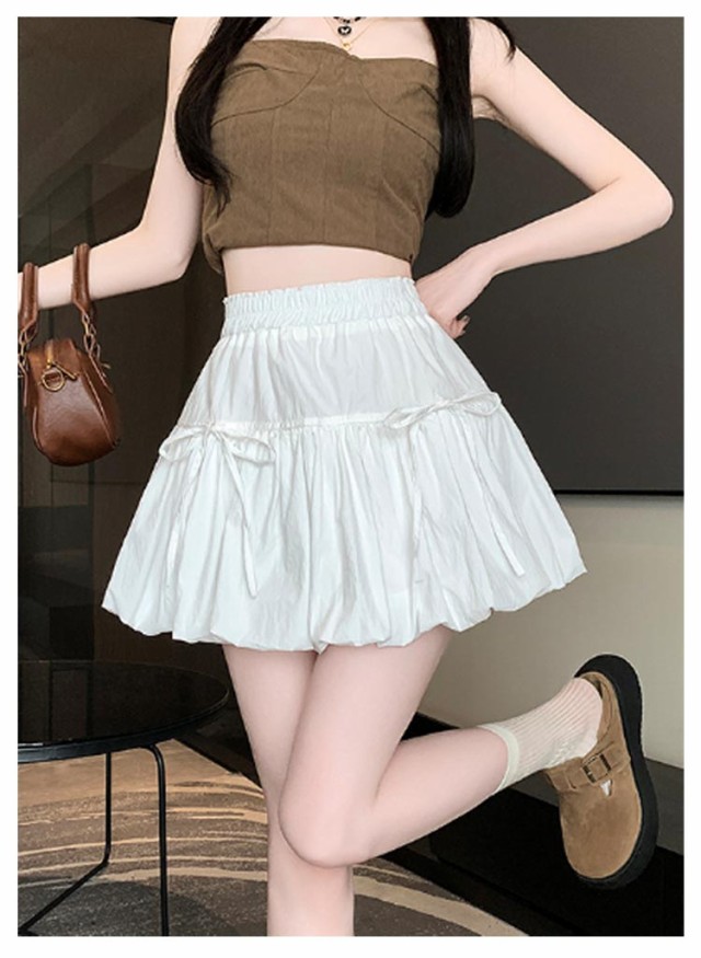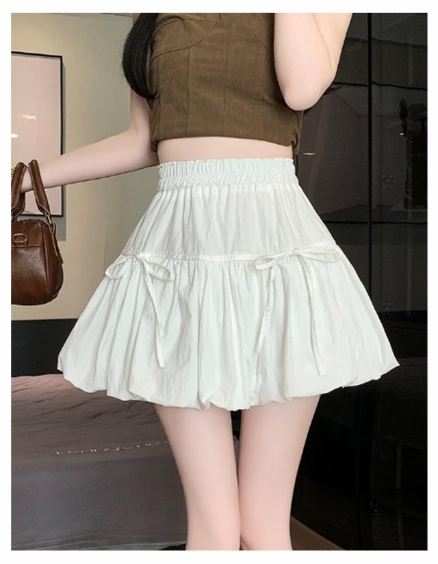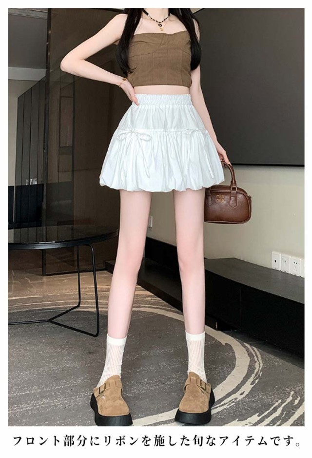 リボンバルーンスカート ジュニア バルーンスカート インナーパンツ付き ミニスカート ガールズ 学生 女の子 リボンバルーンスカート 学校 通学 かわいい 韓国トレンドファッション ガールズボトム ミニスカ ガーリー