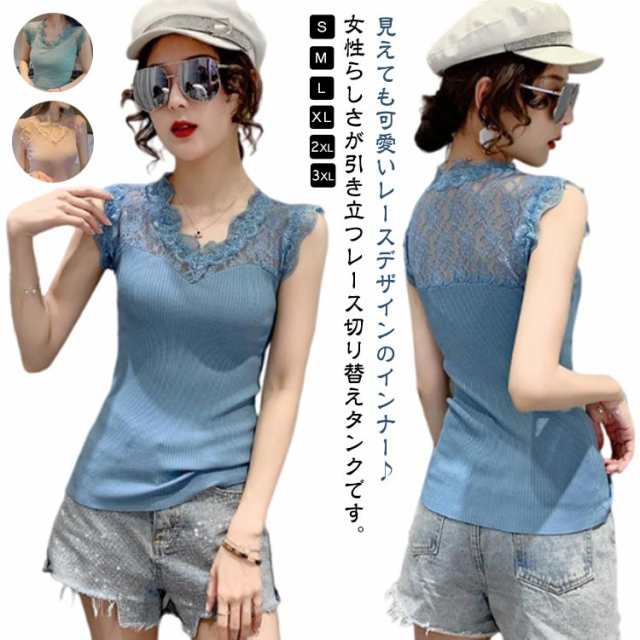 タンクトップ 春 レディース 見せるタンクトップ 黒 レイヤード 夏 タンク インナー レース 接触冷感 接触冷感 ブラ紐隠し Vネック レースタンクトップ シンプル 重ね着 レイヤード 秋 レース トップス 袖なし レース切り替え 白 涼しい きれいめ 春 夏