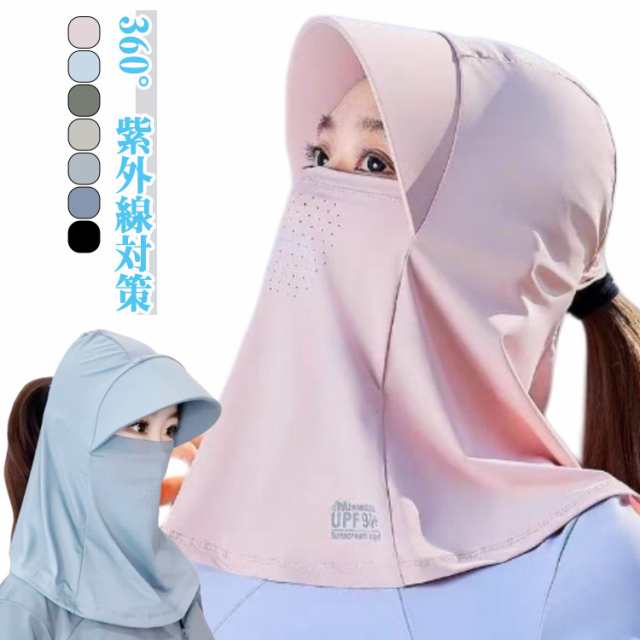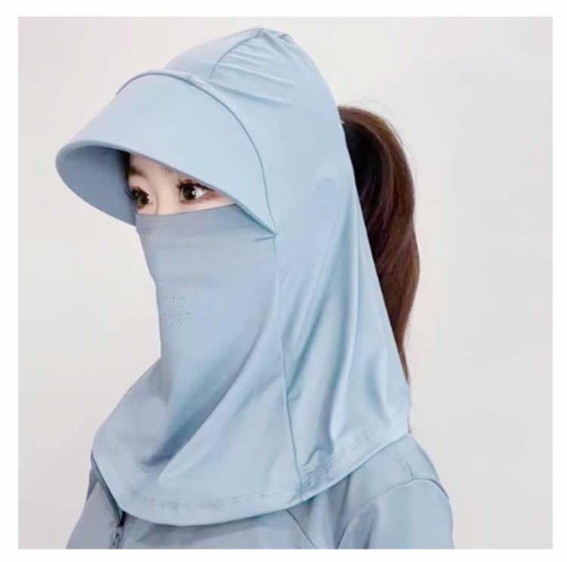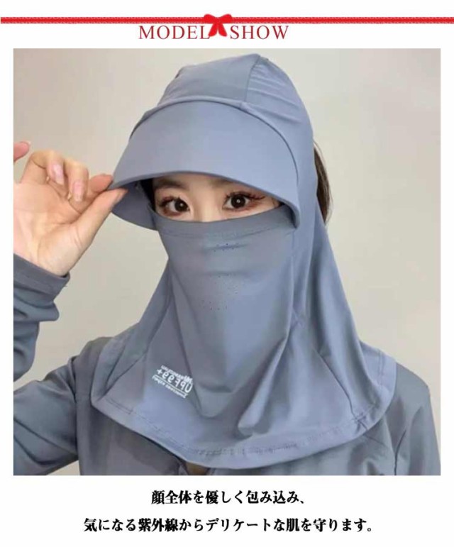 | 【360°紫外線対策】 顔全体を優しく包み込み、気になる紫外線からデリケートな肌を守ります。 フード部分を被れば、頭部や髪の毛の日焼け対策に。日差しの強い日でも安心です。 首元までしっかりカバーできる長めの設計。うっかり日焼けしやすい首筋やデコルテもしっかりガードします。 顔のラインにぴったりフィットする設計で、激しい動きでもずり落ちてくる心配がありません。 スポーツ時やアウトドアシーンでもストレスなくご使用いただけます。 | |