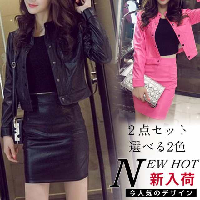 着回し自由な2点Set♪レザージャケット×レザースカート セットアップ レディース 2点セット フェイクレザージャケット トップス スカ