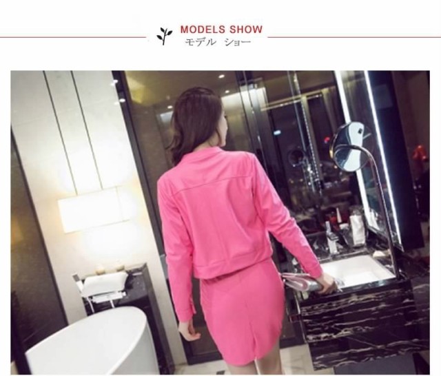 単品使いもOK!お得便利な2点Set♪レディースセットアップ フェイクレザージャケット+スカートのセット