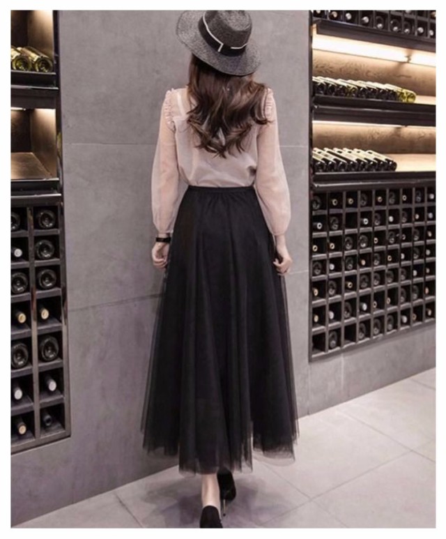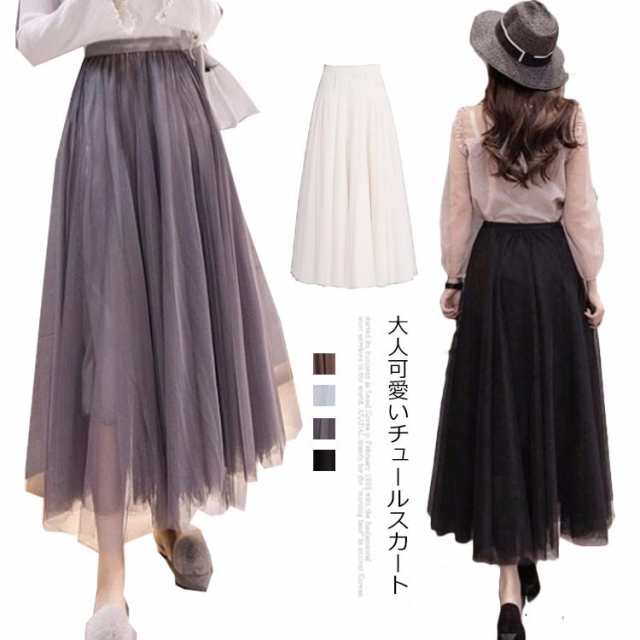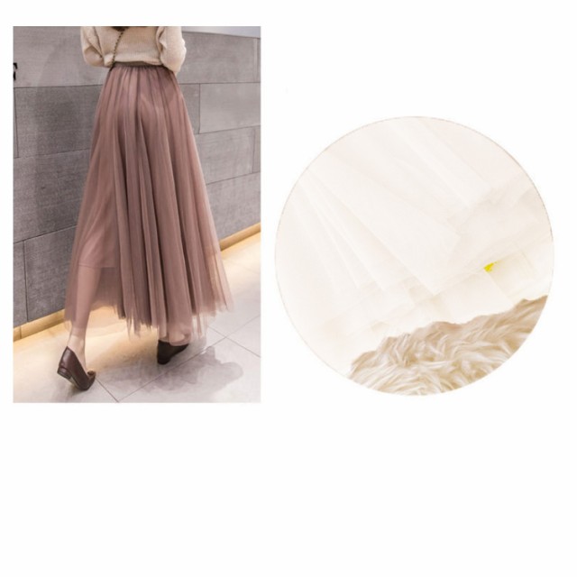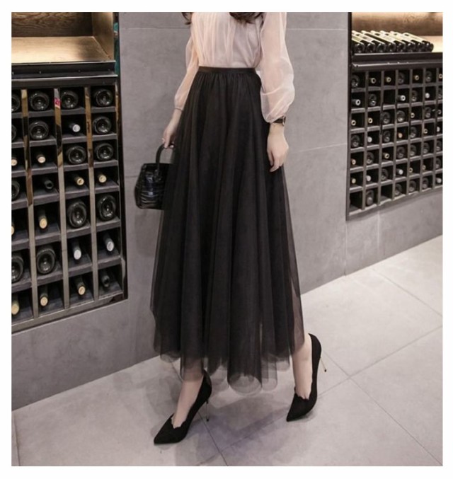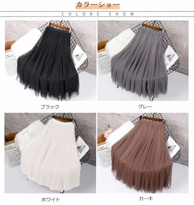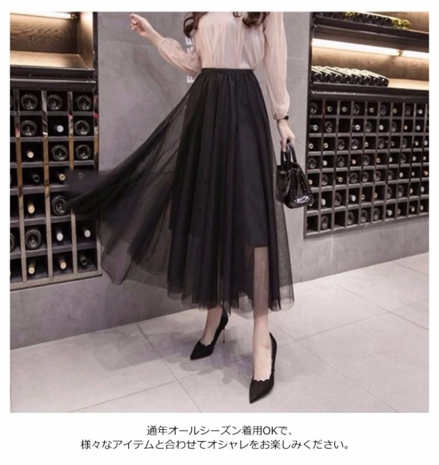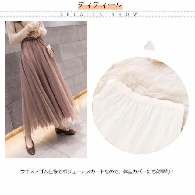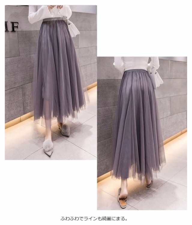 チュールスカート レディース フレアスカート プリーツスカート マキシ丈スカート 体型カバー マキシ ロング ウエストゴム ロングスカート 送料無料 透け感スカート 裏地付き ボリューム 無地 動きやすい 春 夏 秋