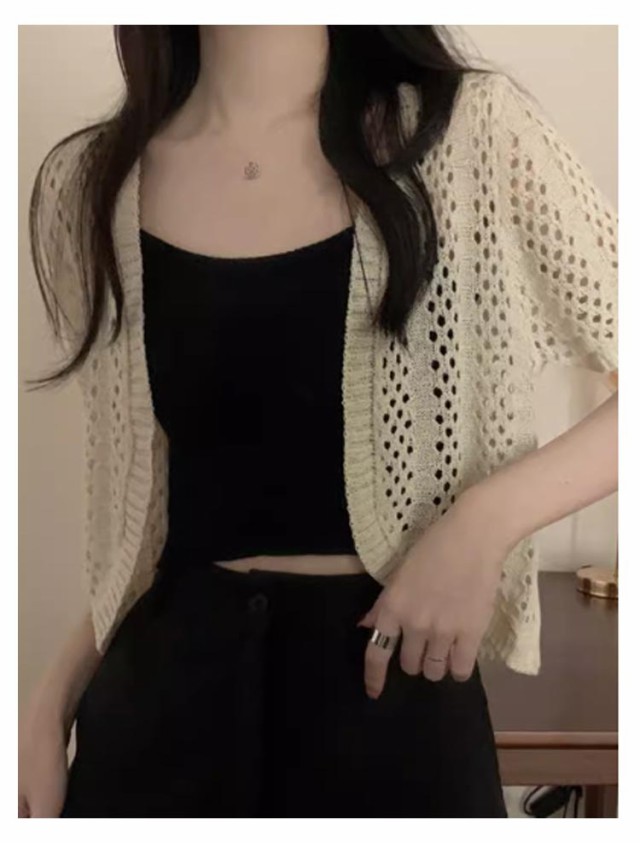 ボレロ サマーカーディガン サマーニット カーディガン サマーニット 羽織 薄手 透かし編み 透け Vネック 透け ニット カットワーク 春夏 軽量 おしゃれ 羽織り 羽織り 薄手 ニットカーディガン トップス アウター 夏服 春夏秋 きれいめ
