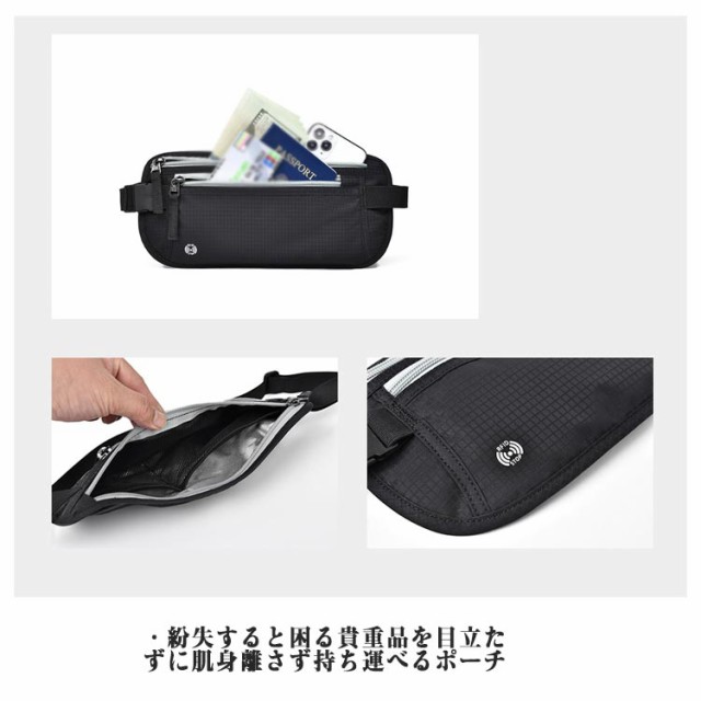 シークレットポーチ 海外旅行 ウエストポーチ スキミング防止 防犯 パスポートケース ウエストバッグ セキュリティポーチ トラベル 貴重品入れ 盗難防止 服の下 隠せる 薄い