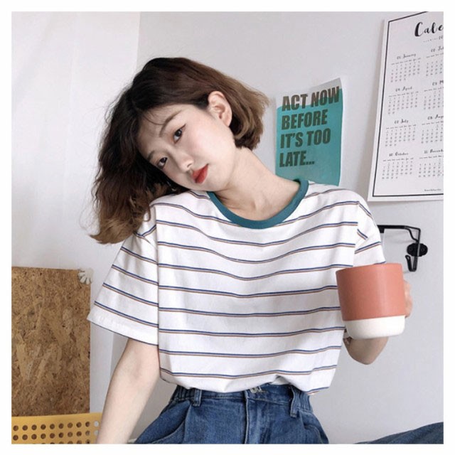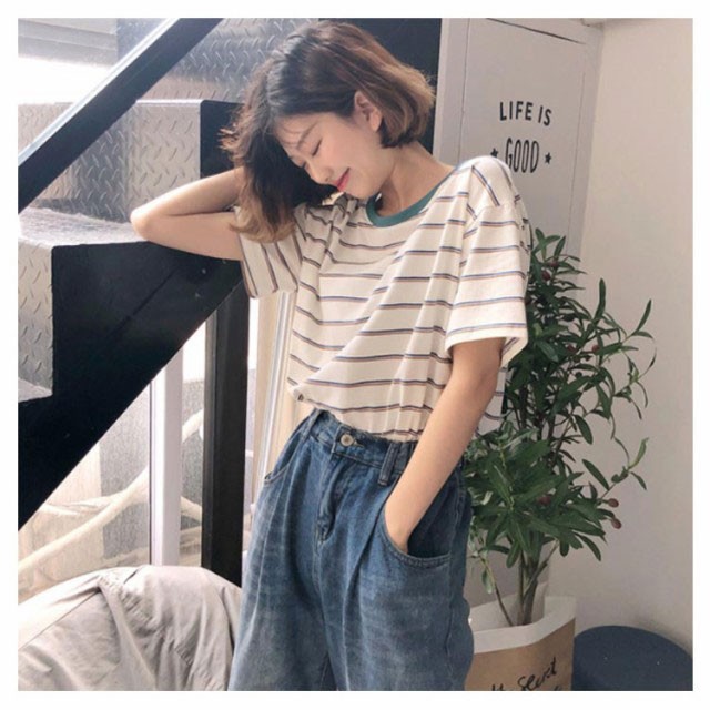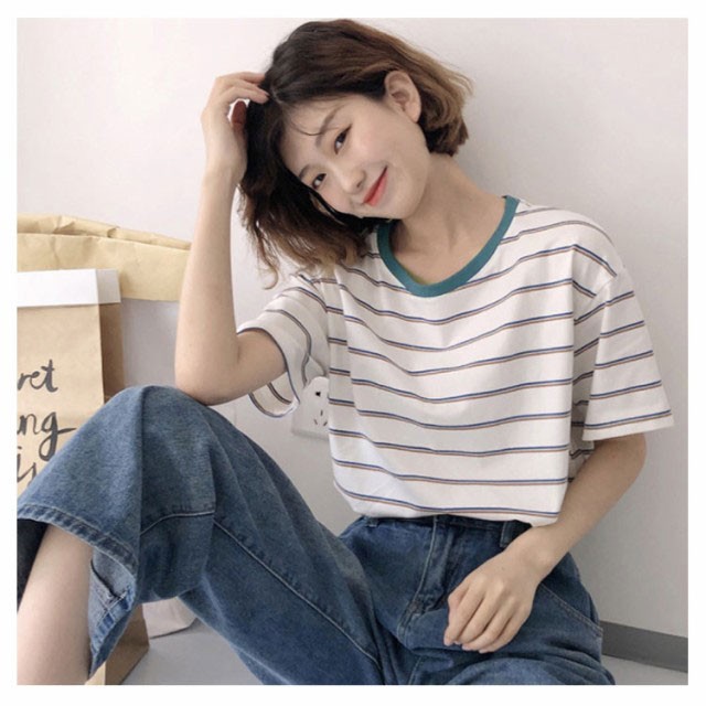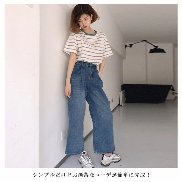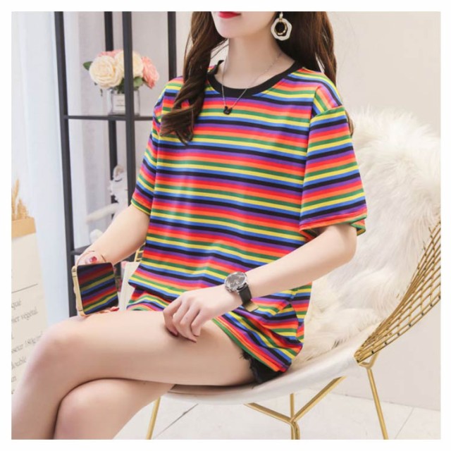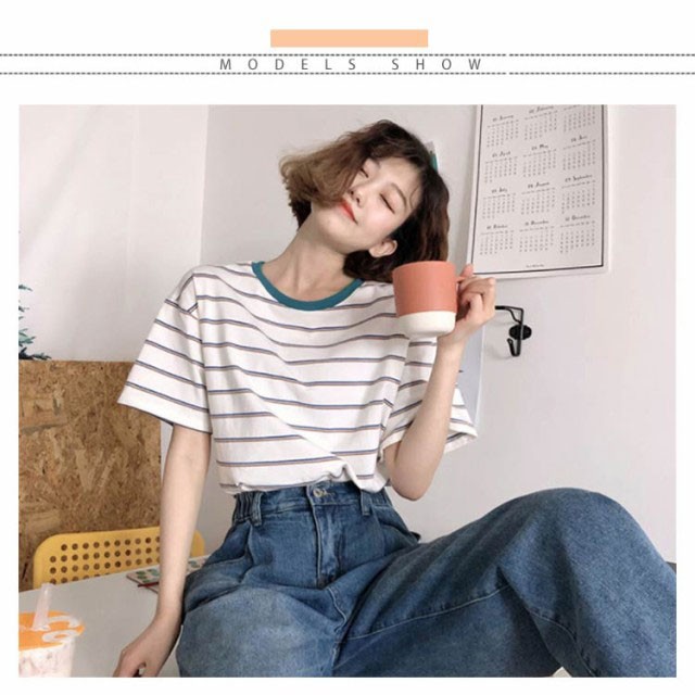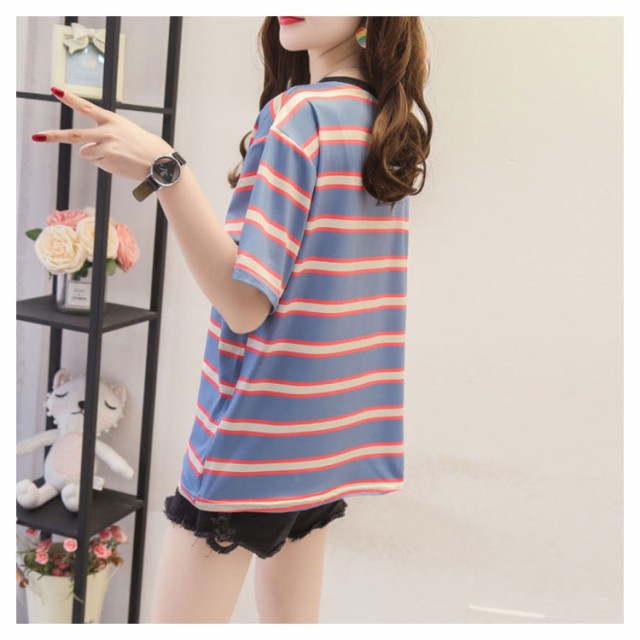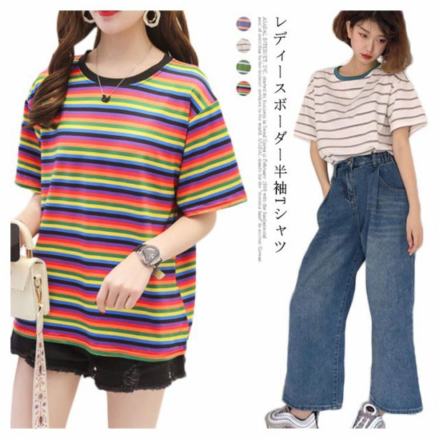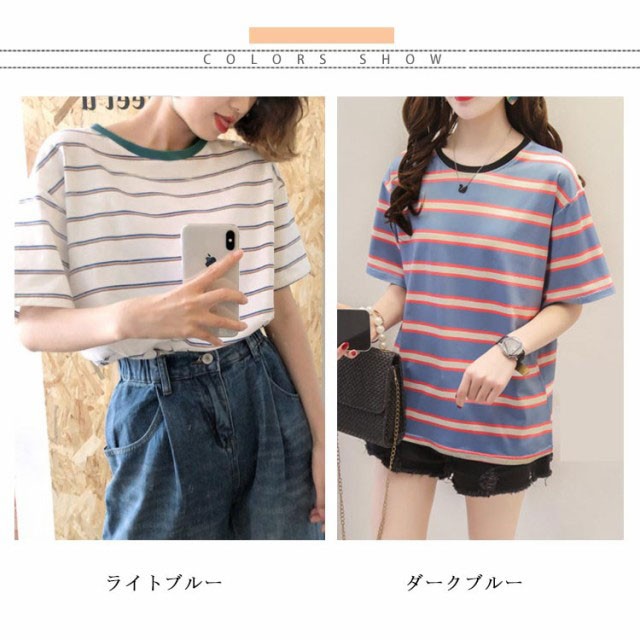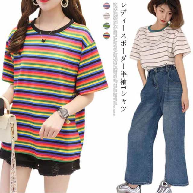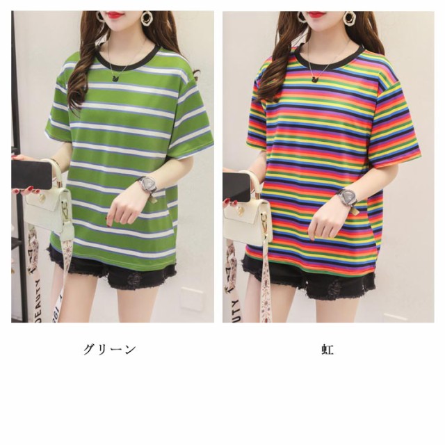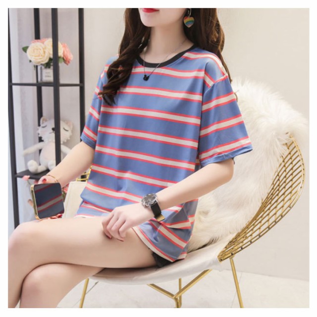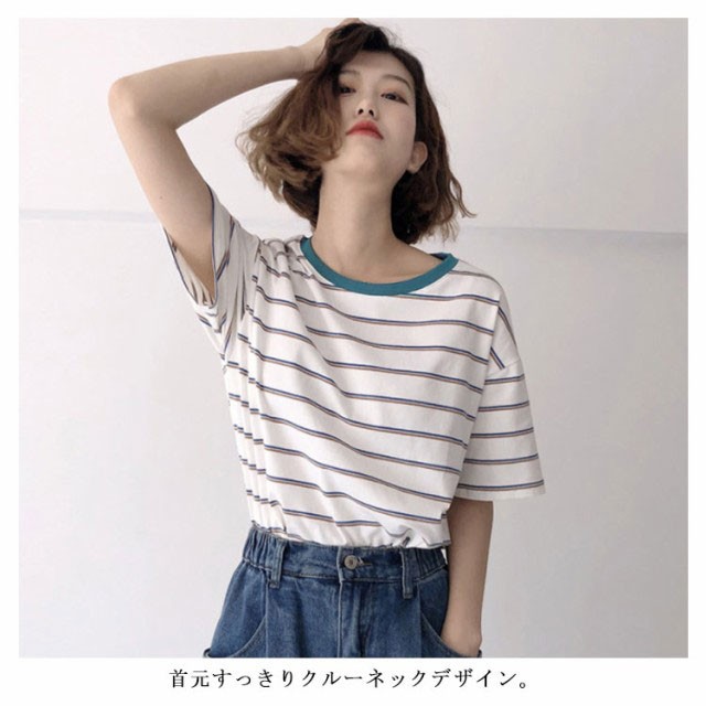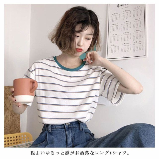 ボーダー 半袖tシャツ レディース カットソー トップス Tシャツ ロングTシャツ ロンT 着痩せ シンプル 学生 大人 おしゃれ 送料無料 新作 韓国ファション