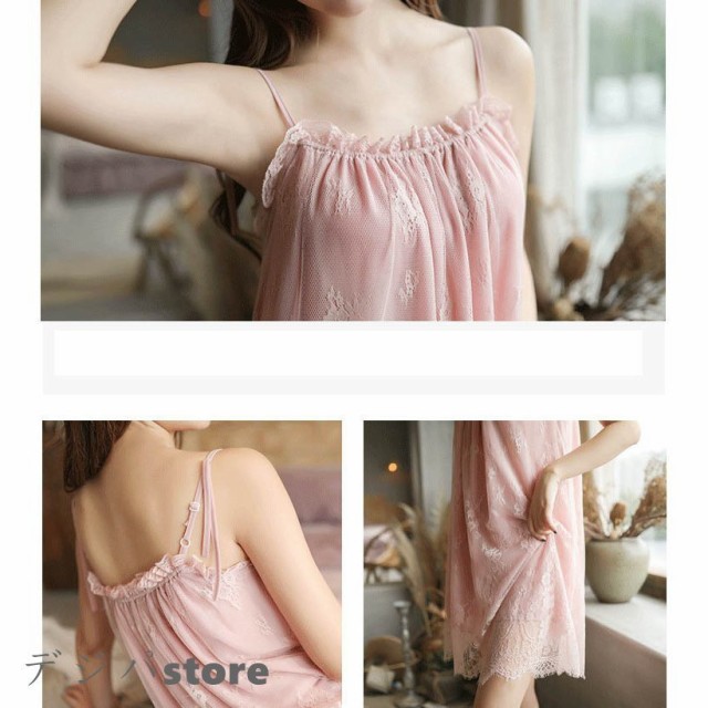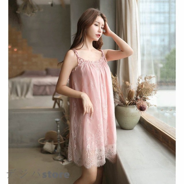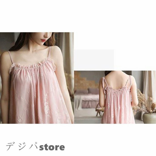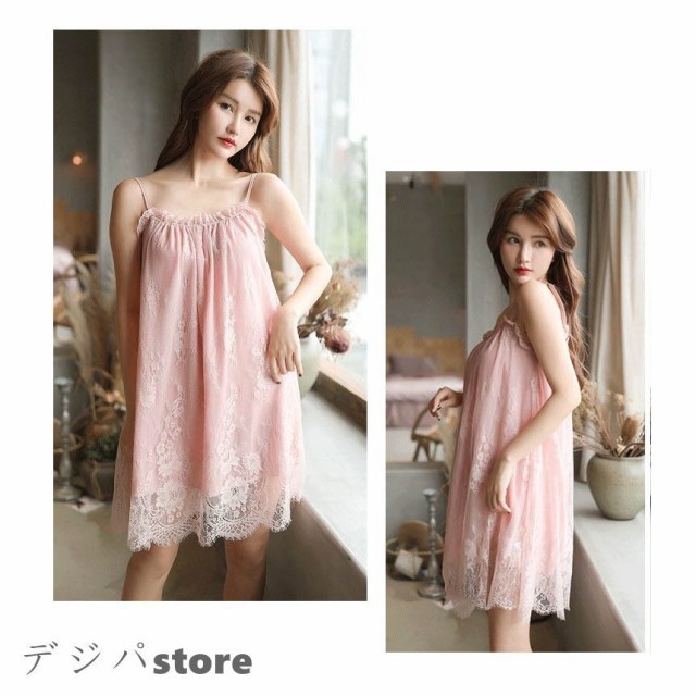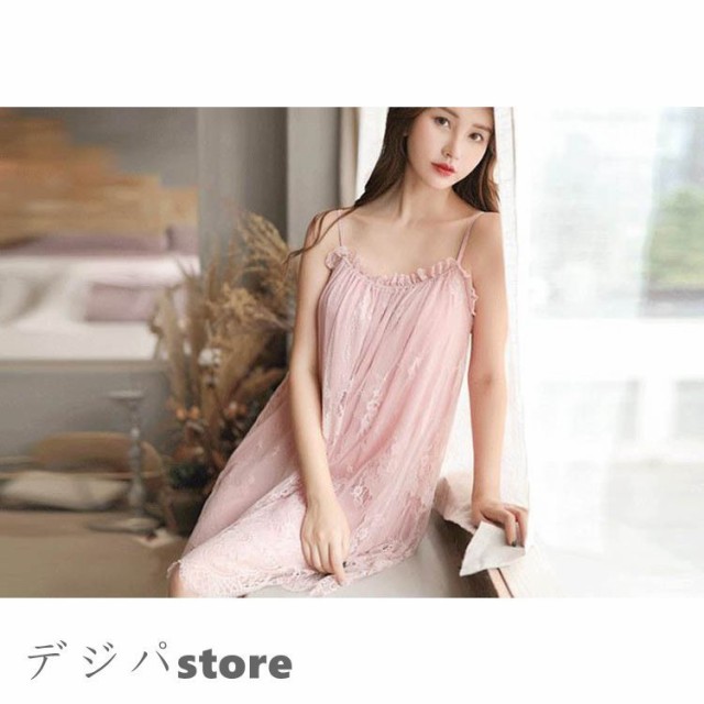 ネグリジェ パジャマ レディース 春夏 ネグリジェ レースフリルつい SEXY キャミワンピース ルームウェア 女性 部屋着 寝巻き 上品 大人