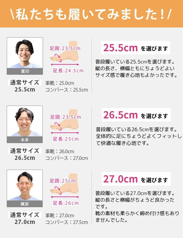 取り扱いサイズ:25cm 25.5cm 26cm 26.5cm 27cm