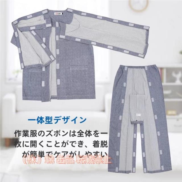 【介護にやさしく】見た目は普通なパジャマですが、便利なワンタッチテープがついてます。点滴、検温や着替え時の開閉が簡単する。車椅子をご利
