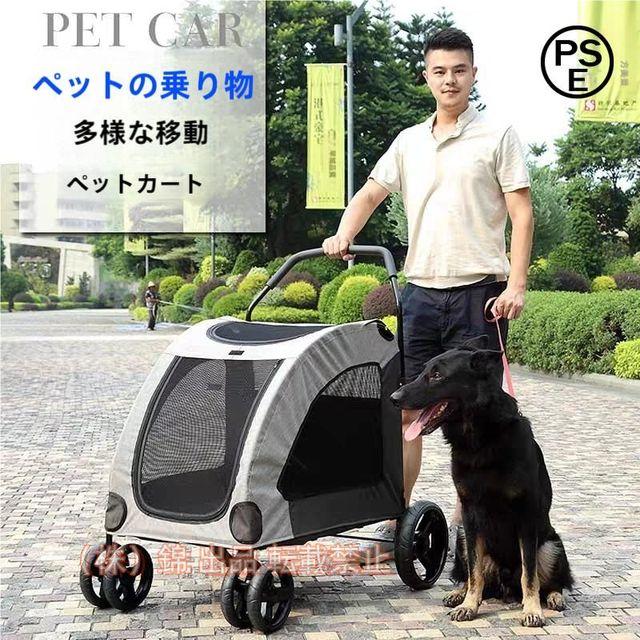 ペットカート 多頭中小型犬 大型犬バギー 犬用カート中型犬 四輪 組み立て簡単 介護用 多機能 通気 株式会社錦 軽量 耐荷重60kg お出かけ (グレー)