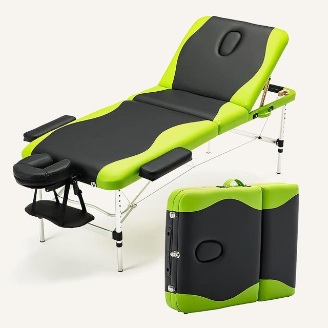 【仕様】展開サイズ:186*70*48~78cm、折りたたみサイズ:93*20*70cm、面孔尺寸:20*12cm,耐荷重400KG、材質:アルミニウム合金+環境保護PUレザー+スポンジ。