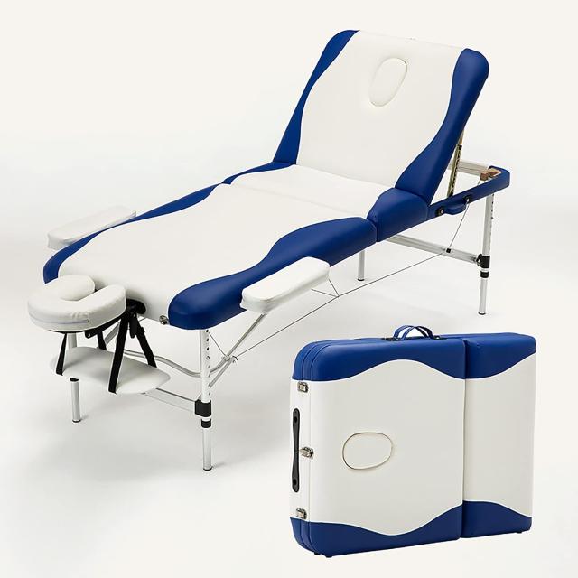 マッサージベッド 折りたたみ 施術用ベッド アルミ・有孔 軽量14KG 耐荷重400KG 長さ186×幅70×高さ48?78cm 整体ベッド ホワイト-ブルー