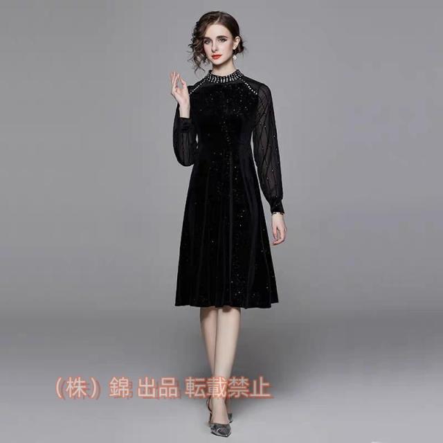 パーティードレス 結婚式 40代 20代 ロング丈 袖あり 長袖 韓国風 大きいサイズ フォーマルドレス マキシワンピース株式会社錦 お呼ばれ 二次会 披露宴