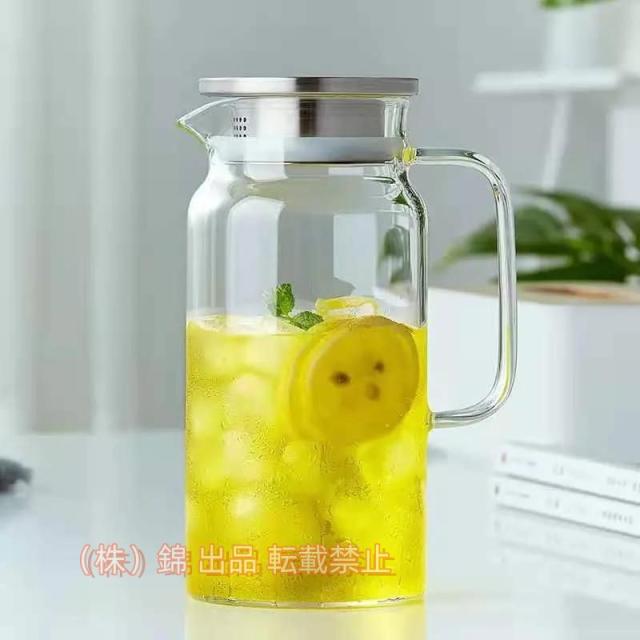 冷水筒ガラスポット耐熱冷水筒ガラスピッチャーケトル麦茶ポット透明ティーポット耐熱直火ステンレス茶こし付きジャグ株式会社錦おしゃれきれい水差し冷蔵庫ポ